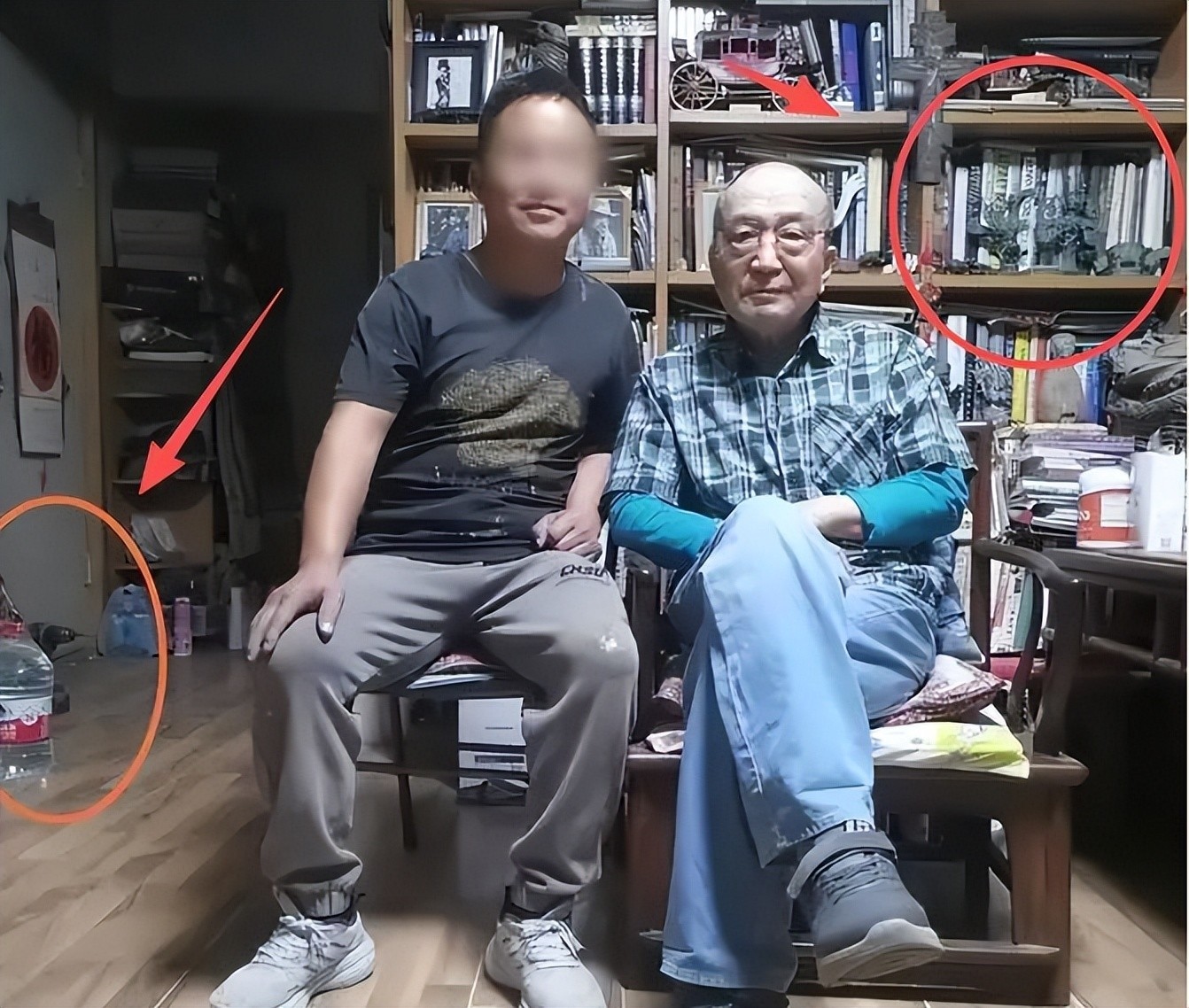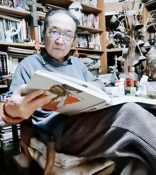 他依旧住在老旧的房子里,书架上整齐排列着戏曲剧本与美术画册,地板边常年放着两桶10元的廉价桶装水。
